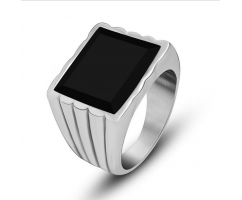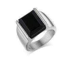 Аккуратный мужской перстень из ювелирной стали. В центре присутствует граненый агат. Классический аксессуар, который будет уверенно смотреться на руке